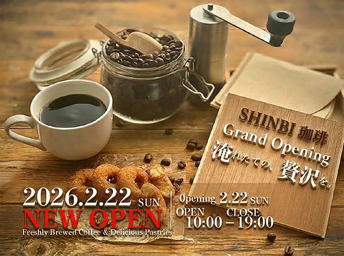 新規オープンしたカフェ「SHINBI 珈琲」の告知チラシです。学校の課題として制作しました。 「思わず立ち寄りたくなる温かさ」をテーマに、写真の撮影・加工までトータルでデザインしています。